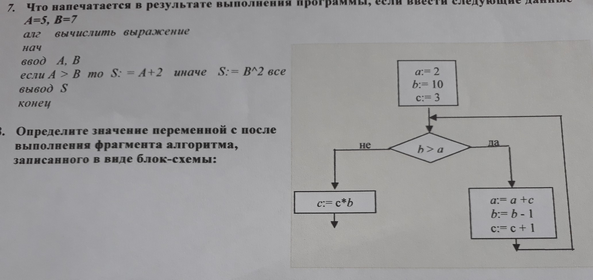Определите значение переменной с после выполнения фрагмента алгоритма.