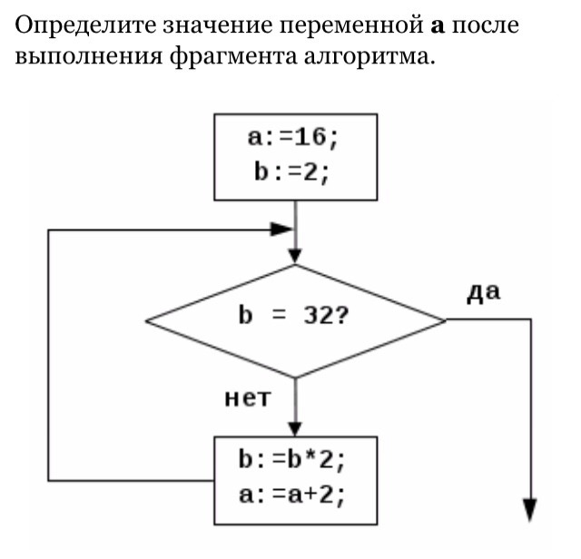 Определите значение переменной а после выполнения фрагмента алгоритма